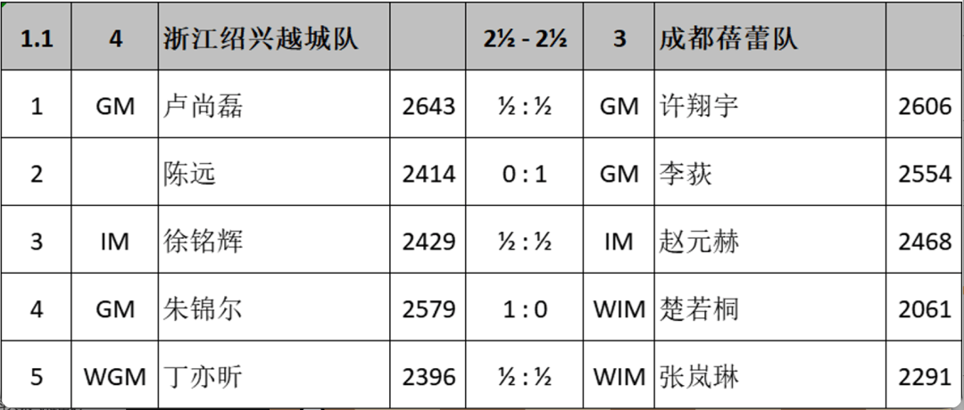 1月29日,“华发杯”2025年中国国际象棋甲级联赛保级战在浙江绍兴镜湖新区结束了最后一场较量。浙江绍兴越城队以2.5-2.5和成都蓓蕾队打平,以两轮比赛总比分5.5-4.5保级成功,成都蓓蕾队掉入乙级联赛。