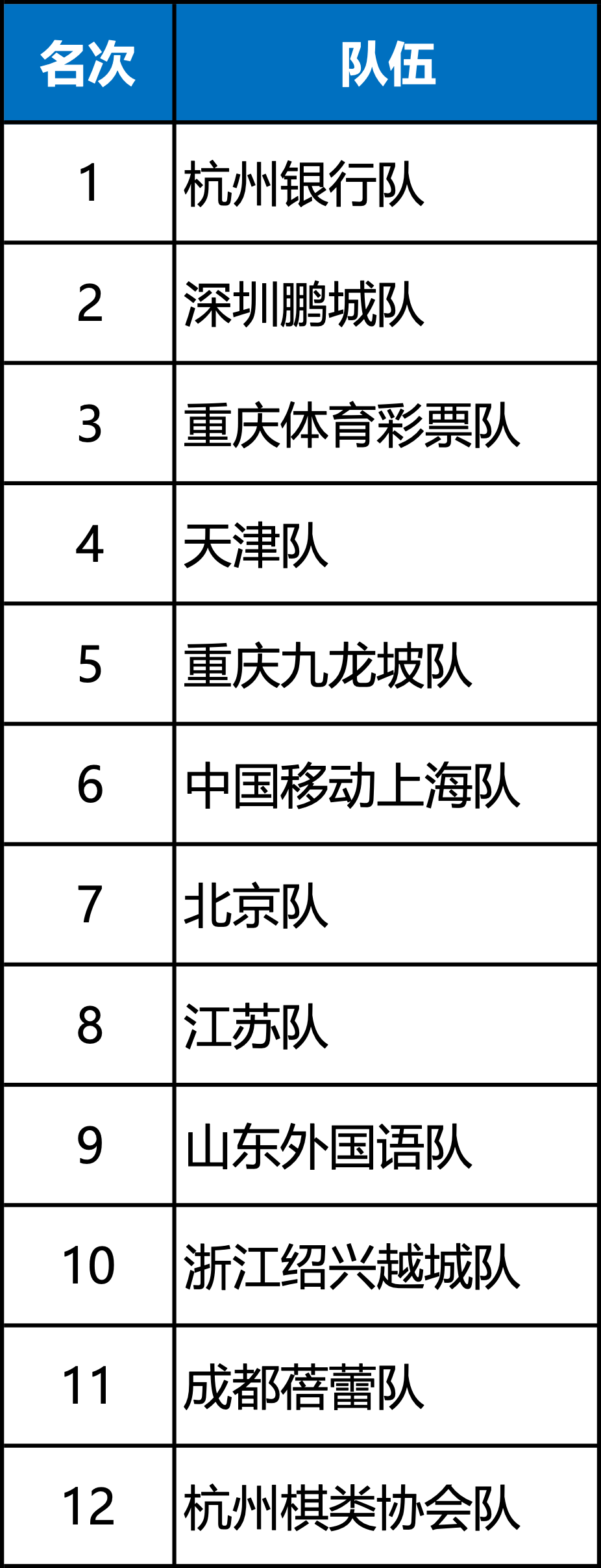 2026年的甲级联赛,将由本赛季的前十名队伍与乙级联赛晋级的江西省国际象棋协会队、杭州智力运动中等专业学校队参赛。