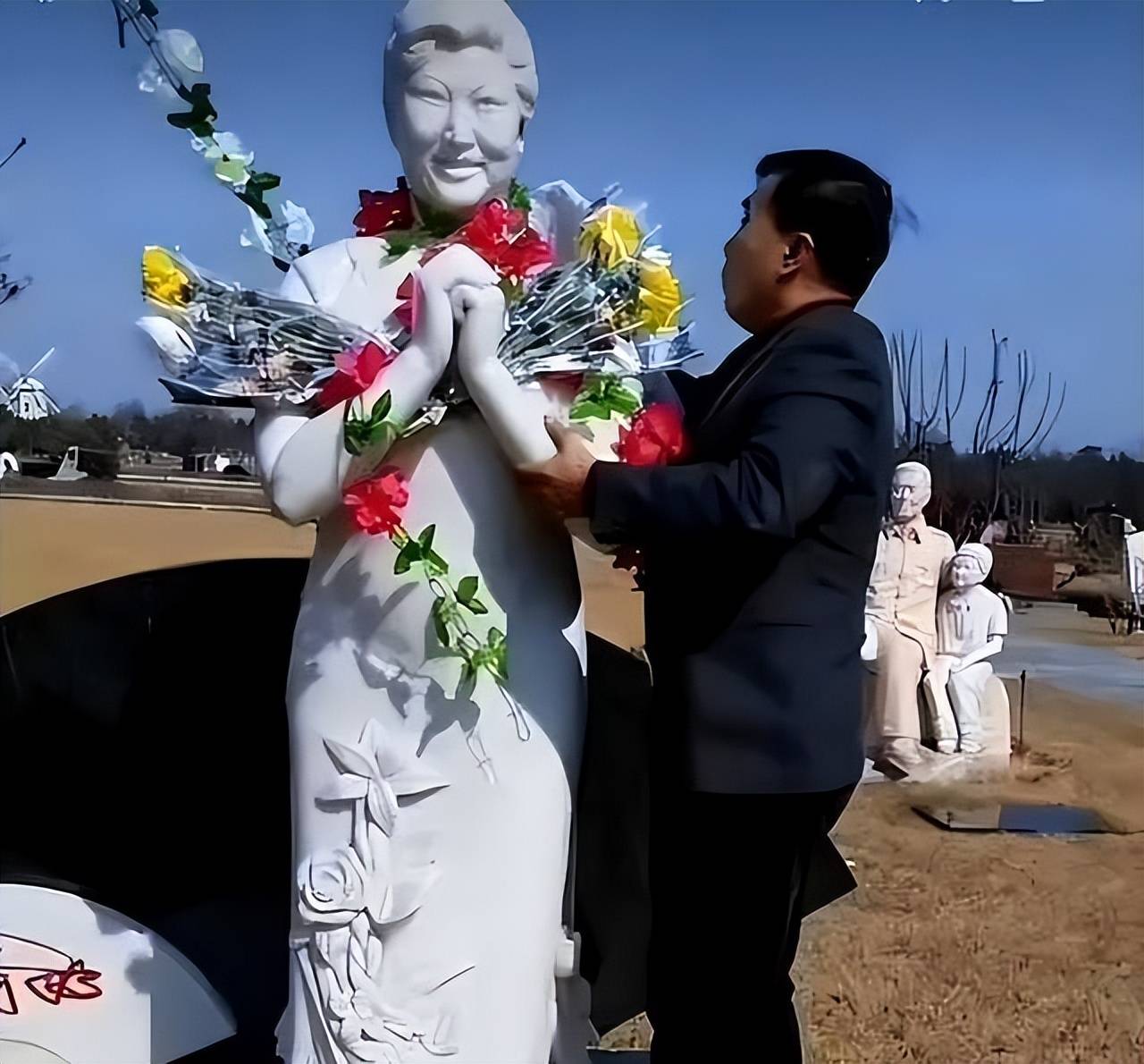 高秀敏走后,何庆魁欠了债,电影项目黄了。他给高秀敏选墓地在长春息园名人苑,有树有草,还立了希腊水晶白大理石雕像,她微笑拱手,像谢幕。他每年祭拜,擦雕像干净。张艳茹呢,让小儿子何树成在高秀敏葬礼上披麻戴孝,够大度的。